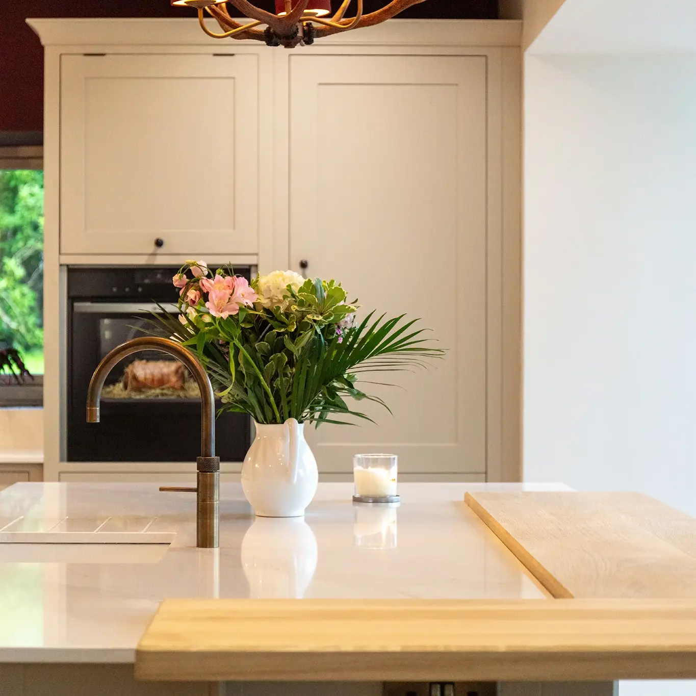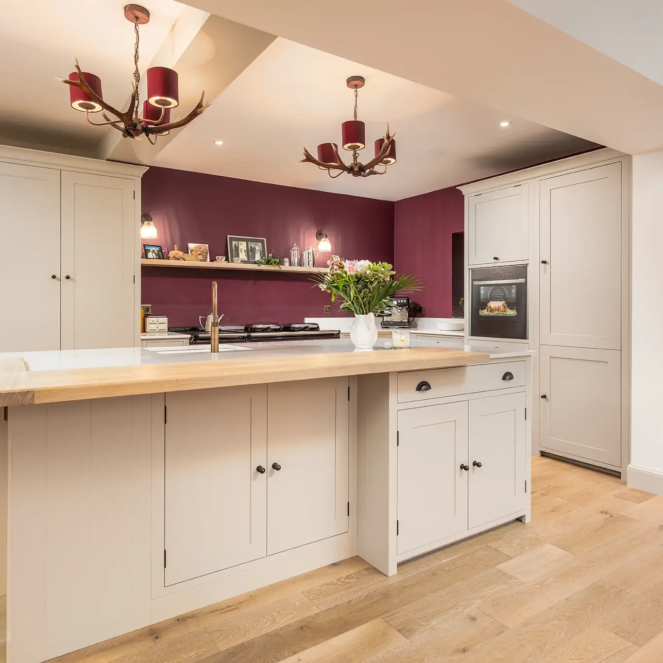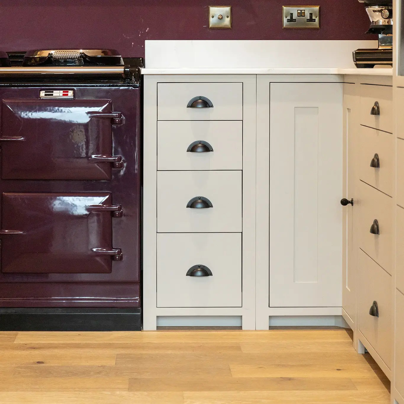 Suffolk kitchen with Driftwood cabinetry, matched with Juniper paint to compliment the AGA