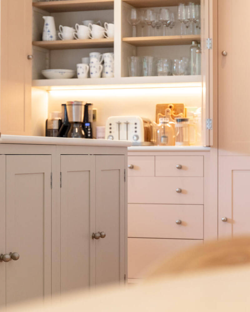 A Suffolk Kitchen and Utility, painted in Driftwood. A perfect fit in an already existing space