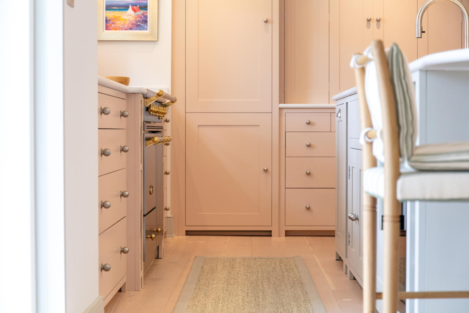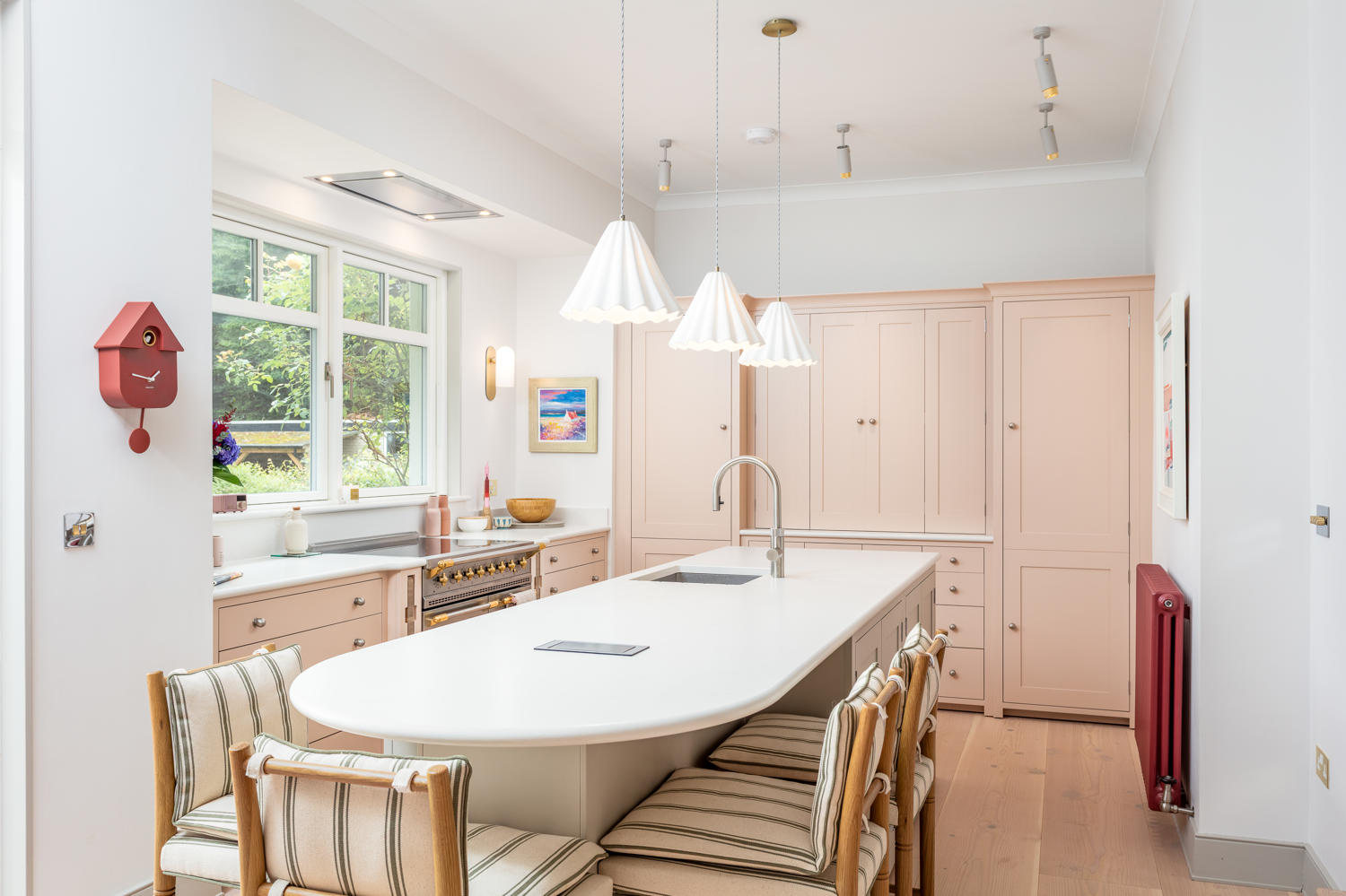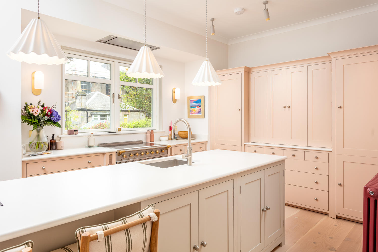 Shaker style Suffolk kitchen painted in Potter's Pink