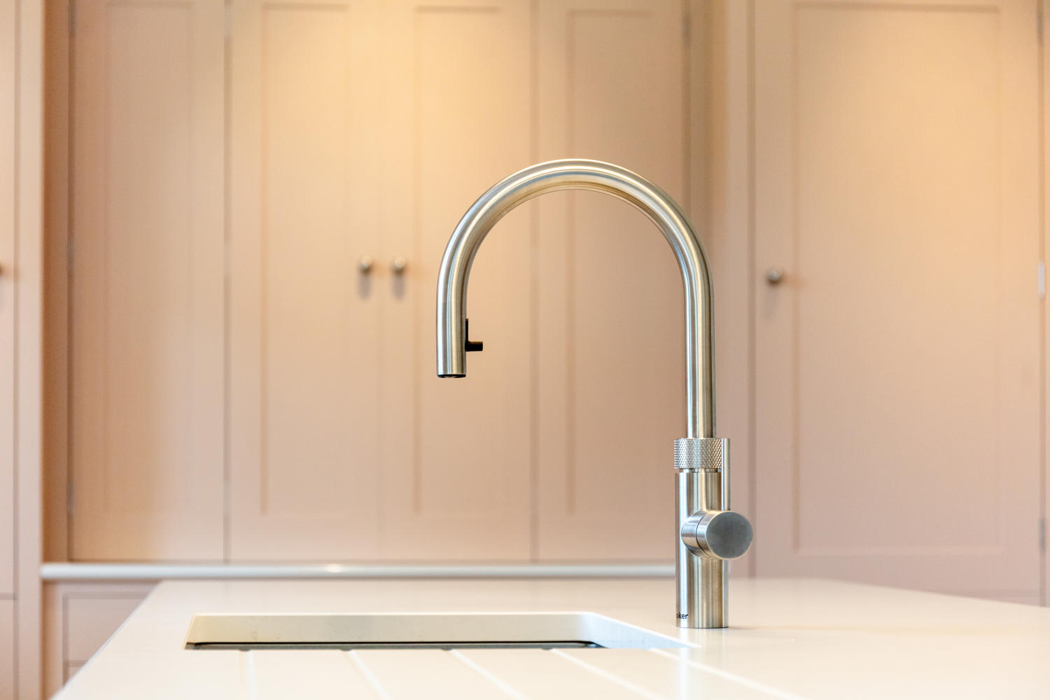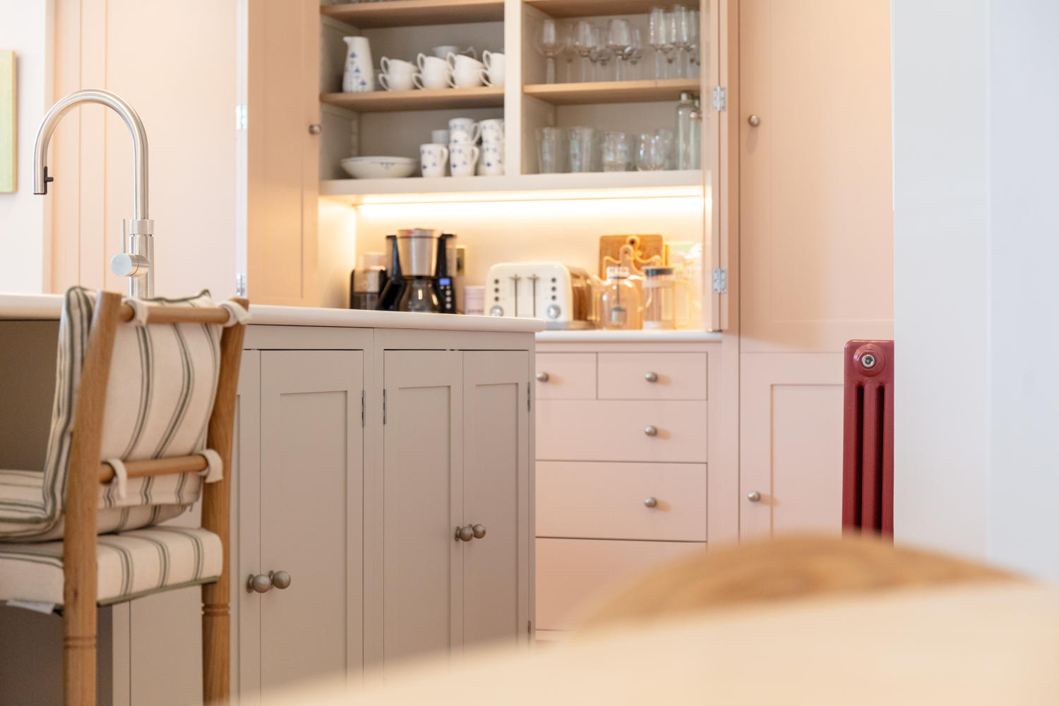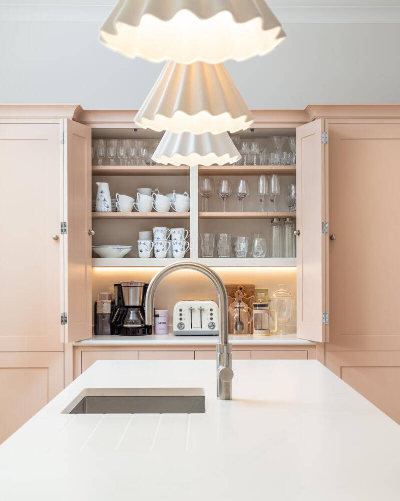 Shaker style Suffolk kitchen painted in Potter's Pink